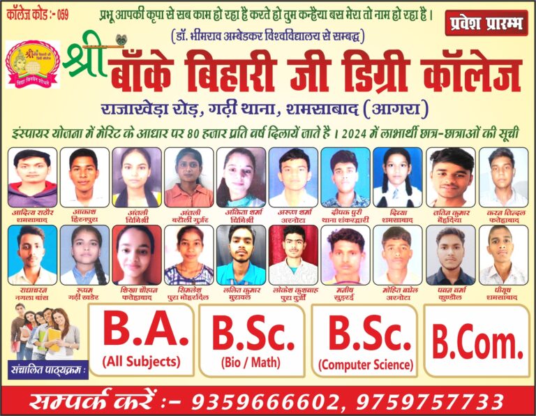 आपको मेरा नमस्ते में कृष्णा शर्मा श्री बांके बिहारी डिग्री कॉलेज घड़ी थाना राजाखेड़ा मार्ग शमशाबाद……